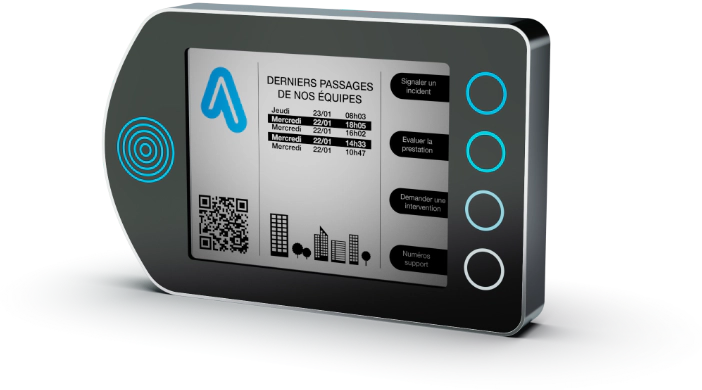 Smart Display allows users to interact with the environment. It can display when a workspace is reserved, when a service needs to be performed or when a service is pending. Smart Display can also be used as a traceability tool.
